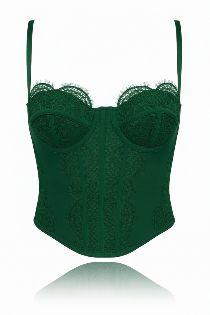 Corset que combina elegancia y sensualidad en una sola pieza. Su diseño estructurado realza la figura, mientras los detalles en encaje añaden un toque delicado y femenino.