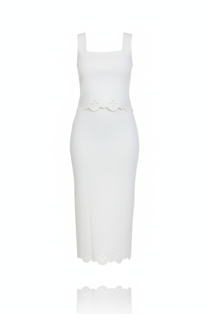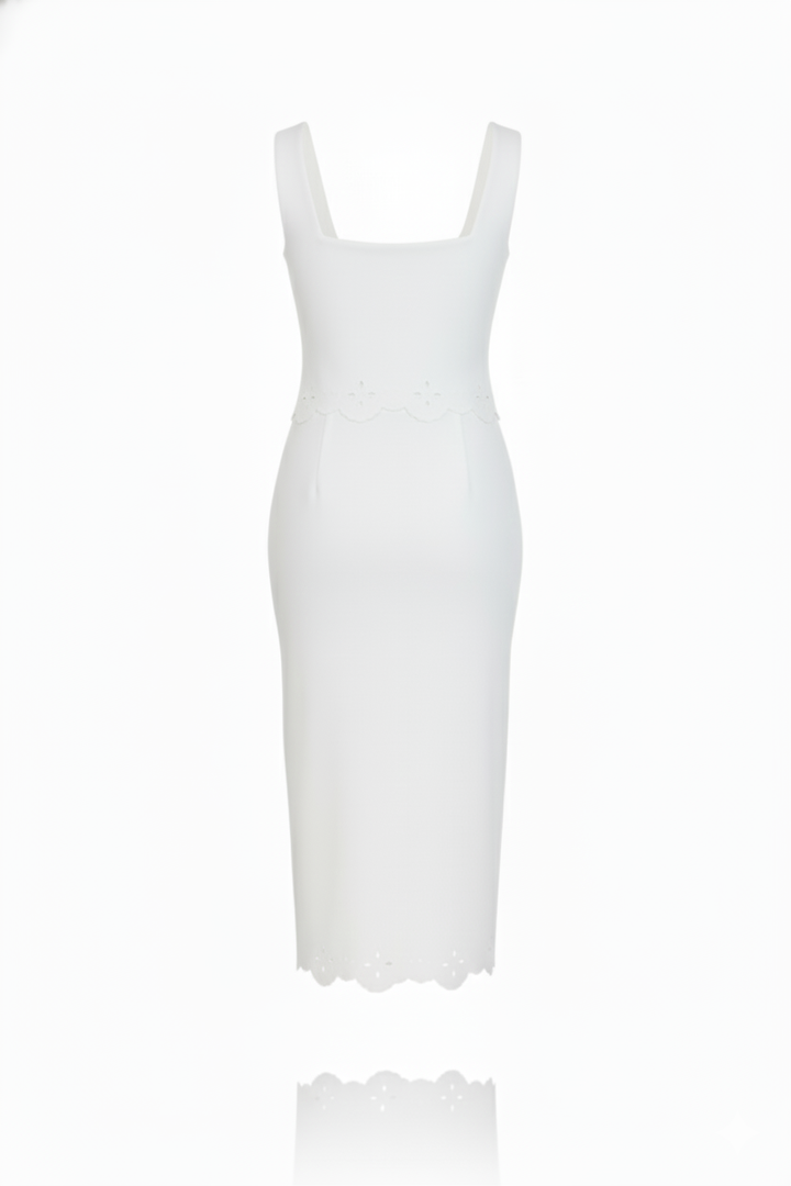 Look elegant and feminine with this bandage set! Featuring delicate embroidery at the bottom and a square neckline, you'll stand out on any occasion.