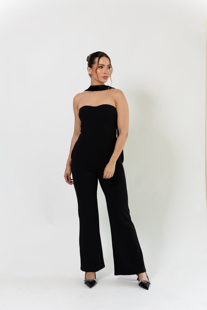 Enterizo elegante, strapless con escote corazón y pantalón de corte recto. Un diseño sofisticado que estiliza la silueta y aporta versatilidad para lucir en eventos formales o salidas nocturnas.