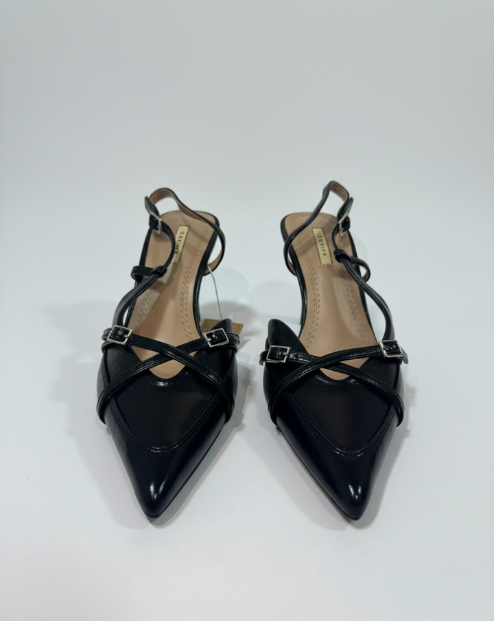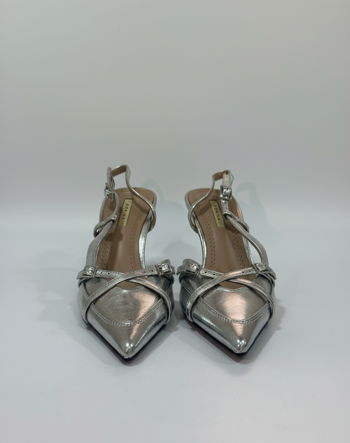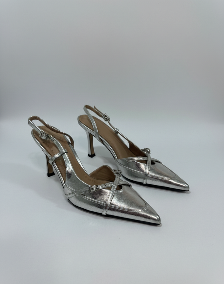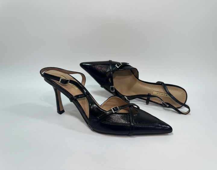 Stilettos de punta fina con tiras ajustables y acabado brillante.Un diseño elegante y versátil que realza cualquier conjunto. Ideales para ocasiones especiales o para elevar tus outfits de noche con un toque refinado.