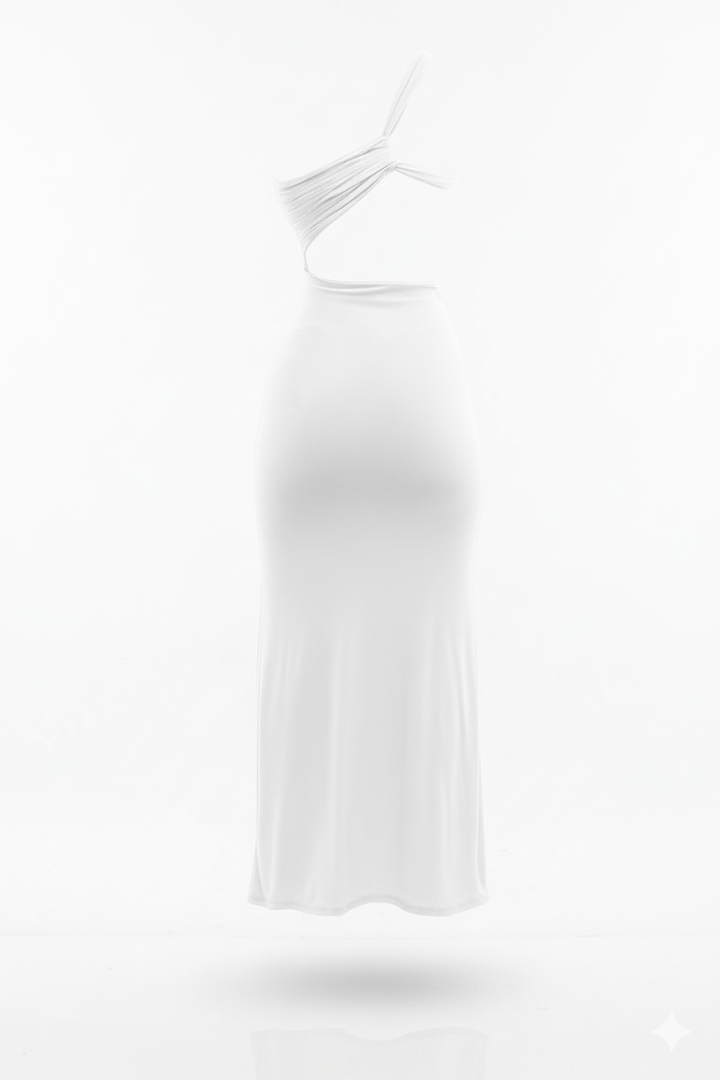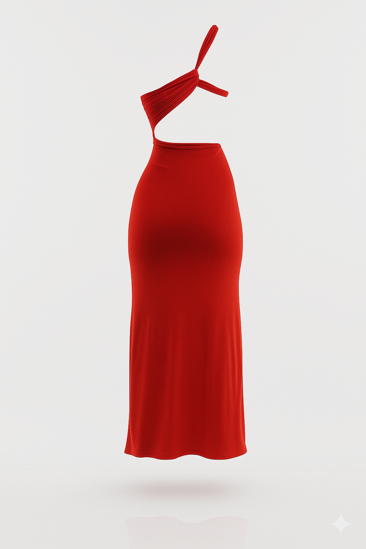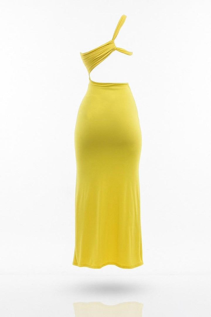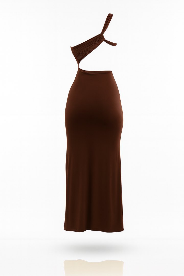 Vestido de un hombro con corte lateral y drapeado elegante, ideal para lucir sofisticada en cualquier evento especial.
