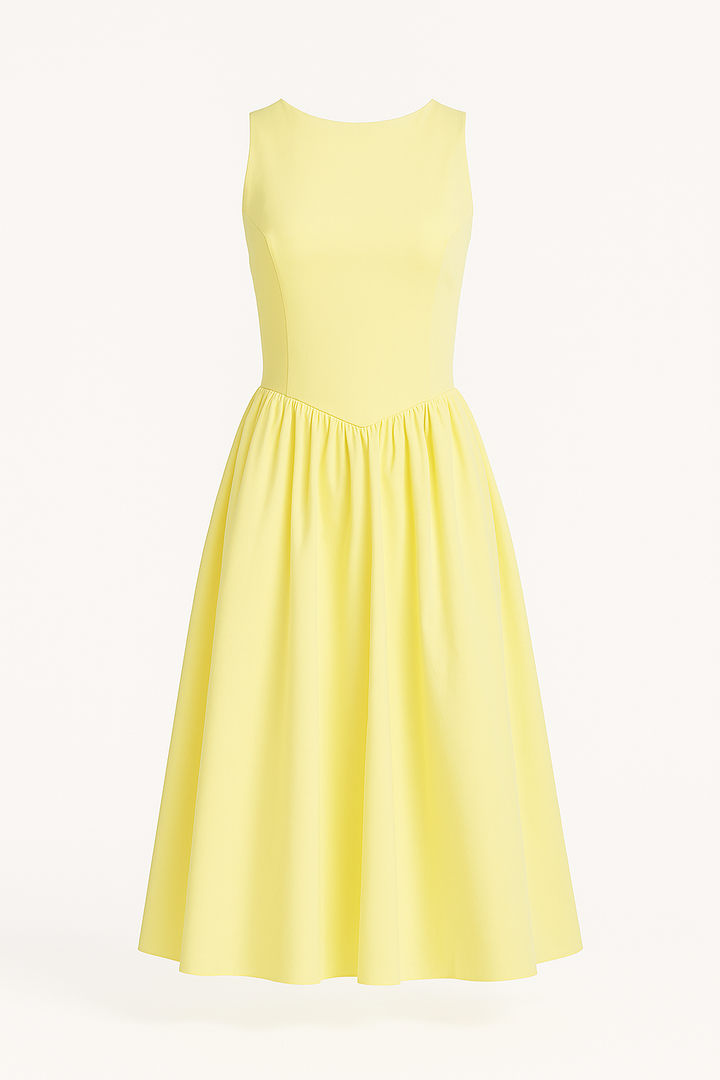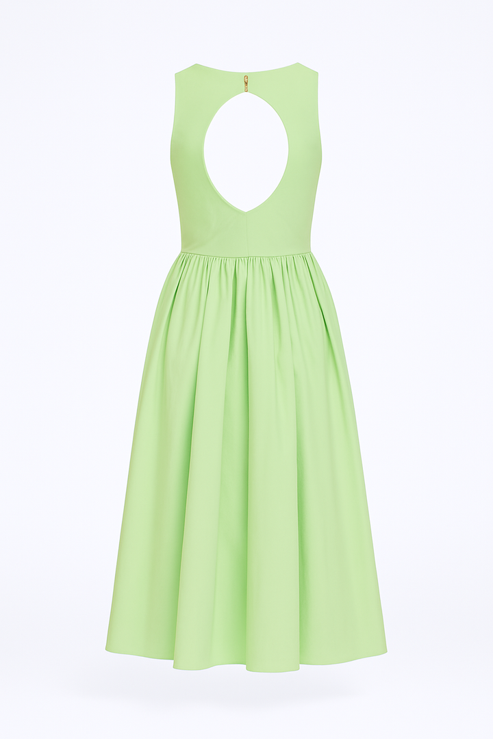 Vestido midi, fresco, elegante y femenino. Con silueta línea A y falda amplia que aporta movimiento, es la prenda perfecta para lucir con estilo en cualquier ocasión.
